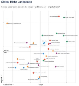 Voltado ao tema do gráfico, um sinal claro de que o “eixo Z do risco ” (aquele que não aparece no documento mas refere-se ao aumento da resiliência dos sistemas sociais e ambientais aos impactos da concretização do risco) está em franca evolução é o desenvolvimento de estruturas institucionais destinadas a identificar, avaliar, monitorar e gerir estes riscos.