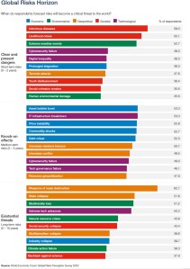 Além disso, a crise do COVID-19 tornou ainda mais evidente que existe um gap de acesso aos recursos disponíveis pela chamada revolução tecnológica dentro das populações dos países, com este gap aprofundando a desigualdade social e concentrando ainda mais poder e recursos nas mãos daqueles que possuem acesso ao capital financeiro, humano e ambiental. Este, em minha opinião, deveria ser um risco classificado como mais provável.