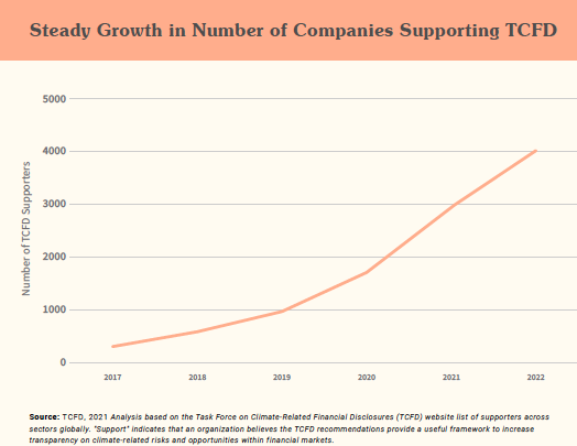 Inicialmente utilizados para classificar as empresas de acordo com suas estratégias, planos, programas e projetos e avaliar a gestão de riscos climáticos, os reportes sobre emissões de carbono mudam de status e diversas métricas desenvolvidas pelo mercado (por exemplo o TCFD) são incorporadas em legislação pelos bancos centrais, exigindo que as empresas apresentem, além do resultado financeiro-econômico, os indicadores não financeiros de desempenho, sejam eles positivos ou negativos, e que tenham estratégia robusta para gerir tais impactos.